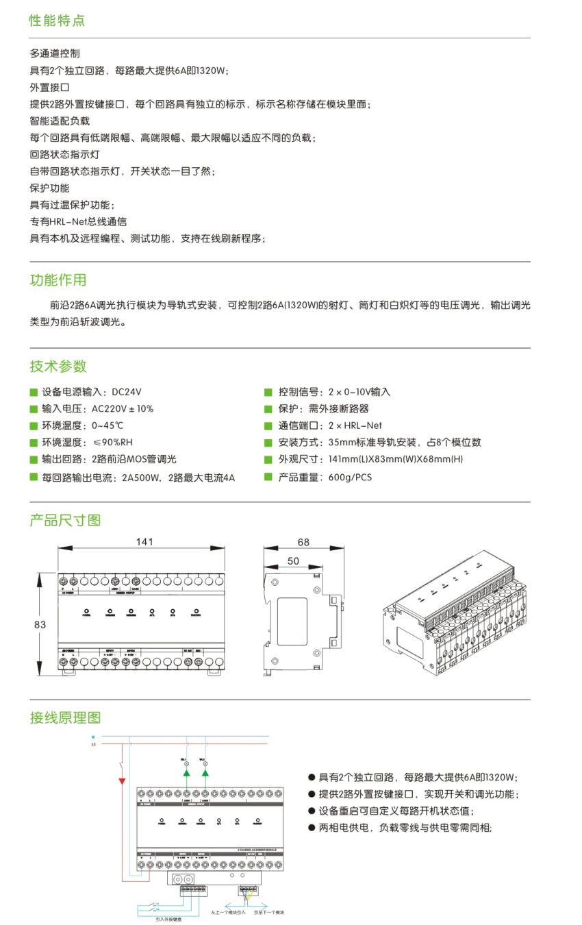 QYM-D0206A Leading Edge 2-Channel 6A Dimming Module